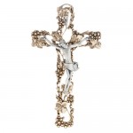 Holyart metal crucifixes are made of silver-plated or gilded bronze and brass by artisans that still use traditional techniques. Elegant and original lines for this Silver-plated and gilded metal crucifix, where the cross is made of silver-plated and gilded grapes and grapevines. Made by a small Italian firm with artisanal techniques, where metal undergoes multiple working phases to guarantee quality and durability.