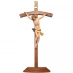 In our store you will also find crucifixes with bases for tables or altar, in wood or metal, such as the Crucifix with curved cross base made of Valgardena colored wood (available also in wood color), handmade by artisans from Valgardena, who follow the best local artistic tradition. Artisans and artists carve Alps wood and paint it with mastery in each single detail. It is a very fine and high quality object.