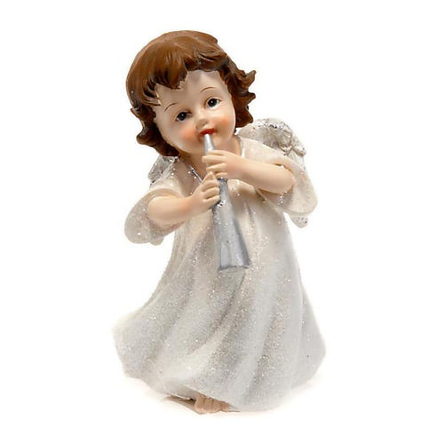 - Christmas decoration, white angel with trumpet 14 cm figurine