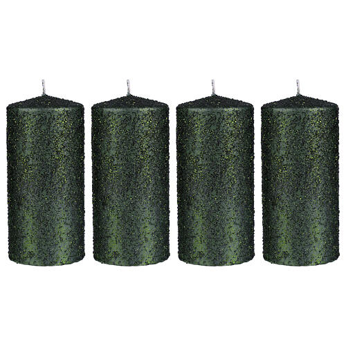 Christmas candle green glitter 4 pcs 150x70 mm