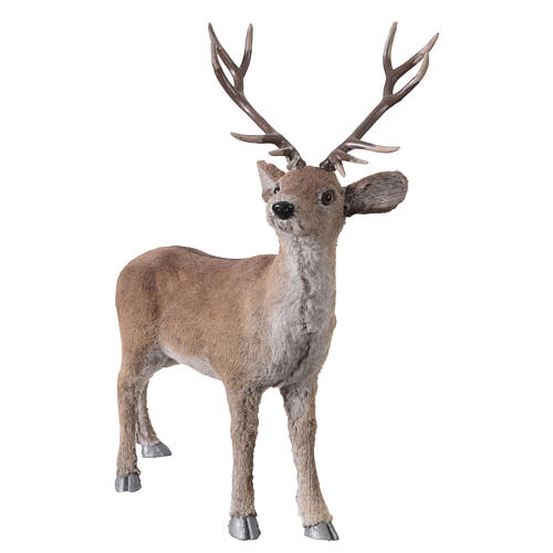 Tender deer statue with artificial fur for Christmas, measuring 29x56x67 cm. Perfect for enhancing shop windows, decorative corners, or seasonal displays with a tender and refined touch. The soft finish of the fur and its realistic appearance also make it ideal for creating Easter or winter decorations, both in commercial and home spaces. Dimensions: height 67 cm, length 29 cm, width 56 cm. A versatile element that adds sweetness and charm to any space.