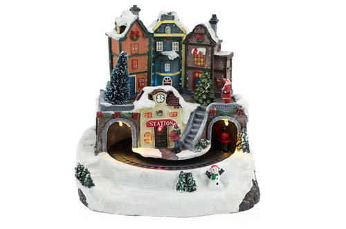 There are two modes of operation: lights + movement + music OR lights + movement. It is suitable for any type of environment and is compatible with winter villages of the same style (for example MyVillage and Lemax villages). The Christmas village is made of resin and is AA battery powered.