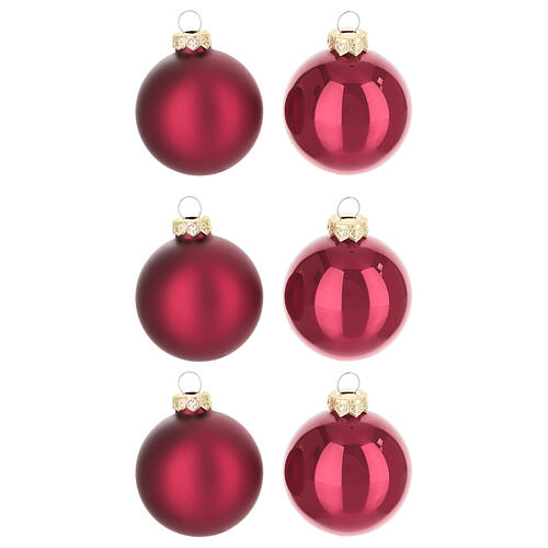Box of 6 red glass Christmas balls, shiny and matte, 8 cm
