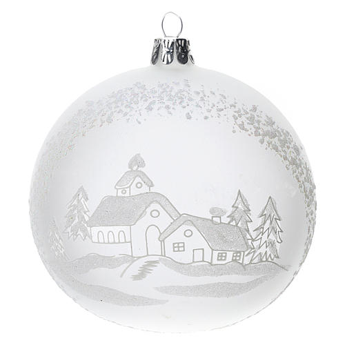 Christmas tree ball in blown glass with snowy landscape, 10 cm.