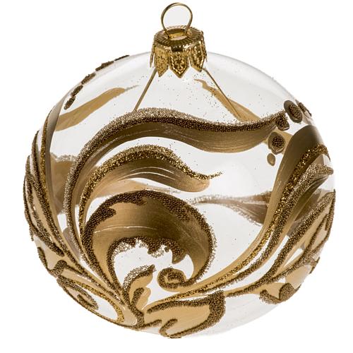 Christmas tree bauble in painted blown glass with gold decorations, 8cm diameter.