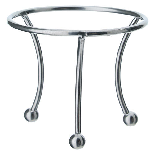 Silver Three-legged Christmas Ornament Holder for 100mm Ball. Silver-plated metal stand with three spherical feet at the base and a 7.2 cm circular ring to support the ball. Total height: 6.2 cm. Perfect for showcasing decorative balls. Made in Poland. Ideal for balls with a diameter ranging from 8 to a maximum of 10 cm.