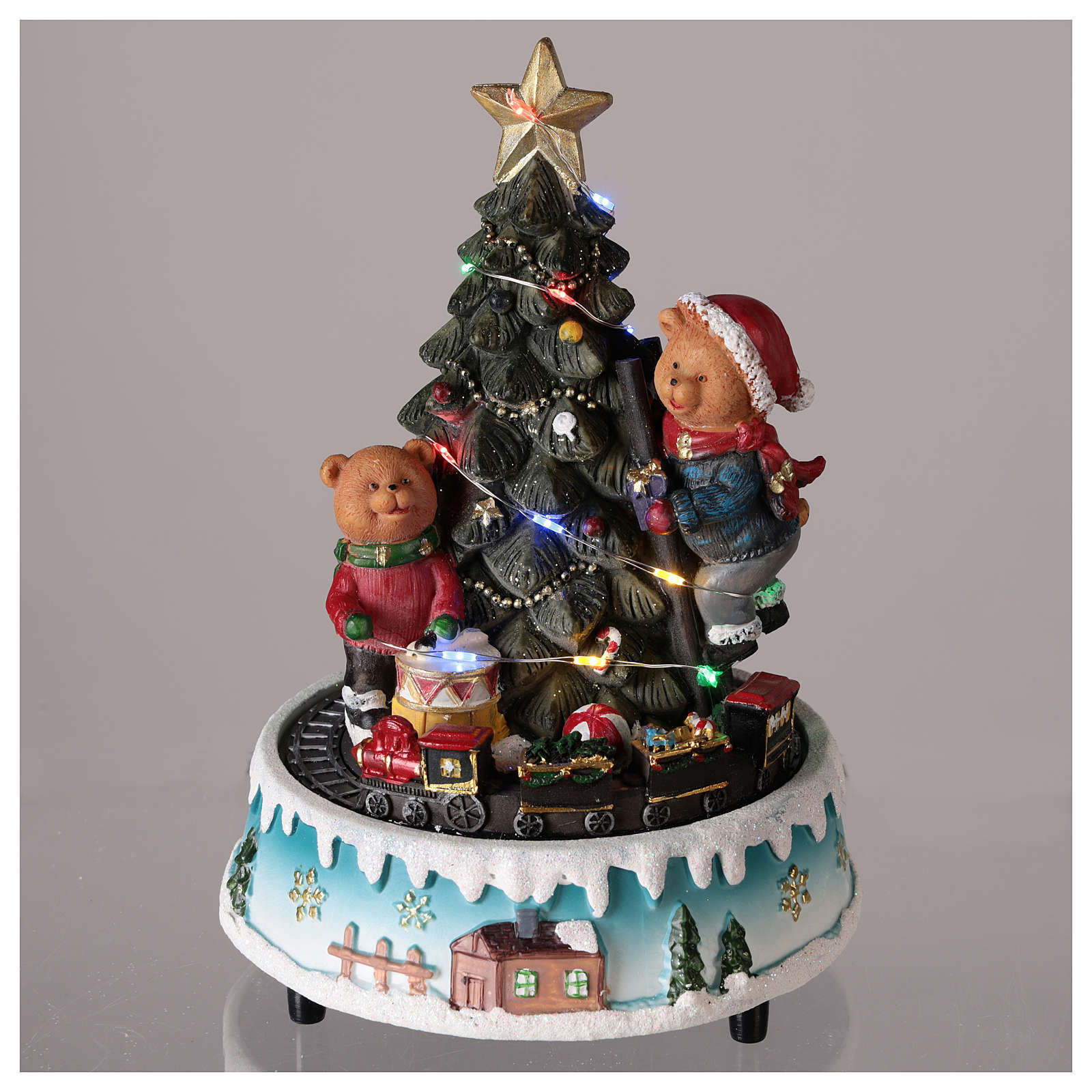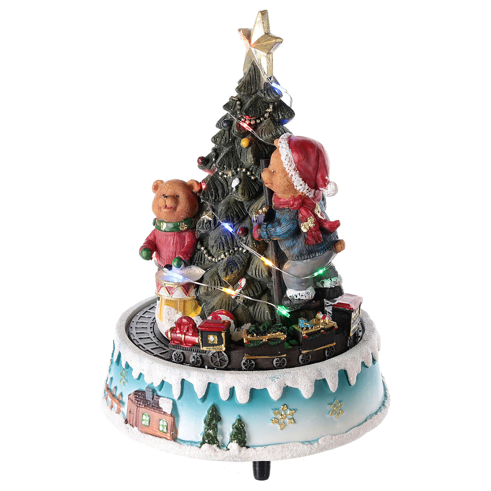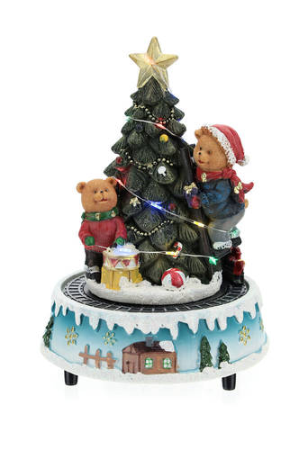 Animated Christmas tree with bears and toys 15x20 cm