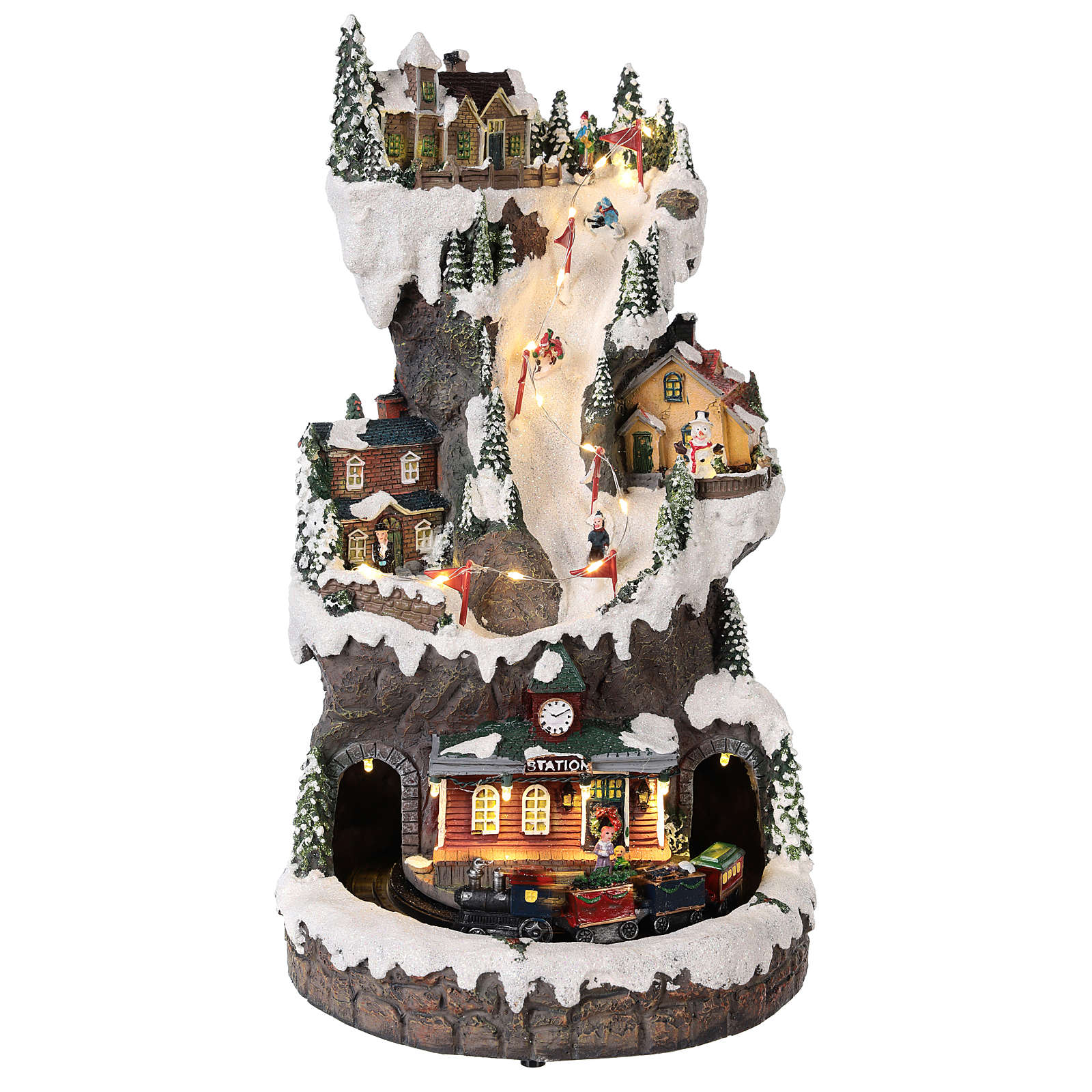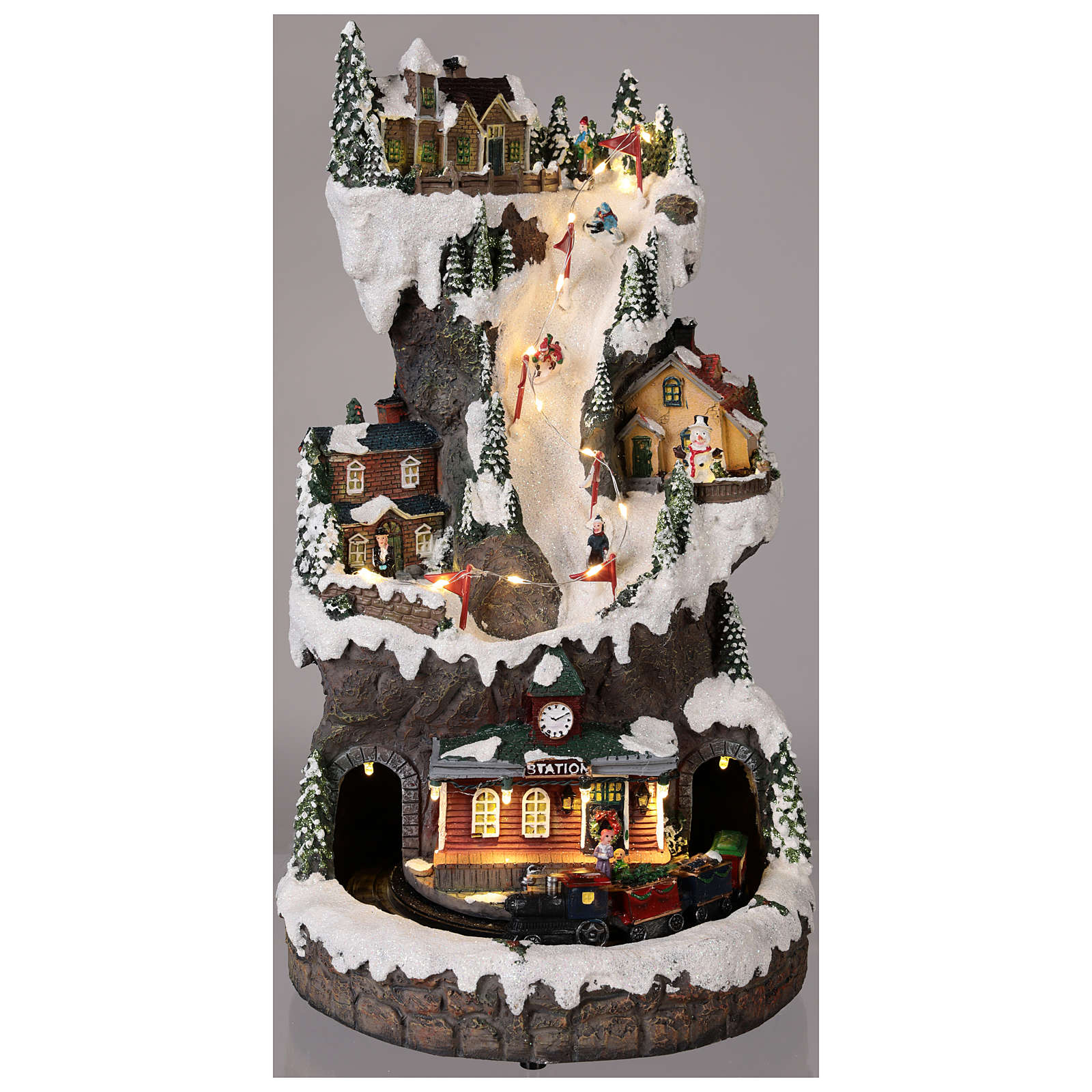 Christmas ski village 33x19.5x19.5 cm with lights and moving train.
