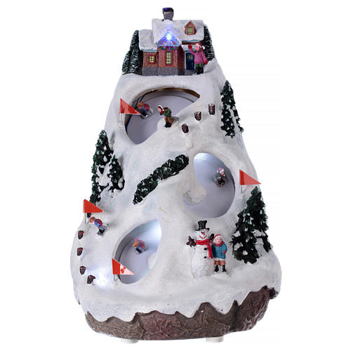 Christmas village illuminated with music movement and skiers 28X19X23 cm