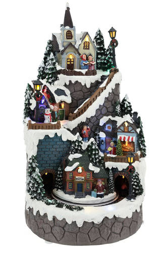 The switch, depending on the side it is positioned, can has two possible functions: lights + movement OR lights + music + movement. It is suitable for any type of environment and is compatible with winter villages of the same style (for example MyVillage and Lemax villages). It works both with electric current with a 220V European plug transformer and with AA batteries.