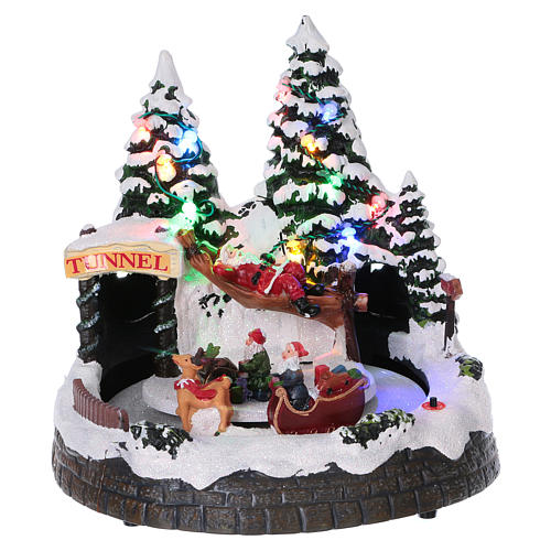 Christmas village scene moving sleigh, tunnel and Santa Claus on hammock 20x20x18 cm