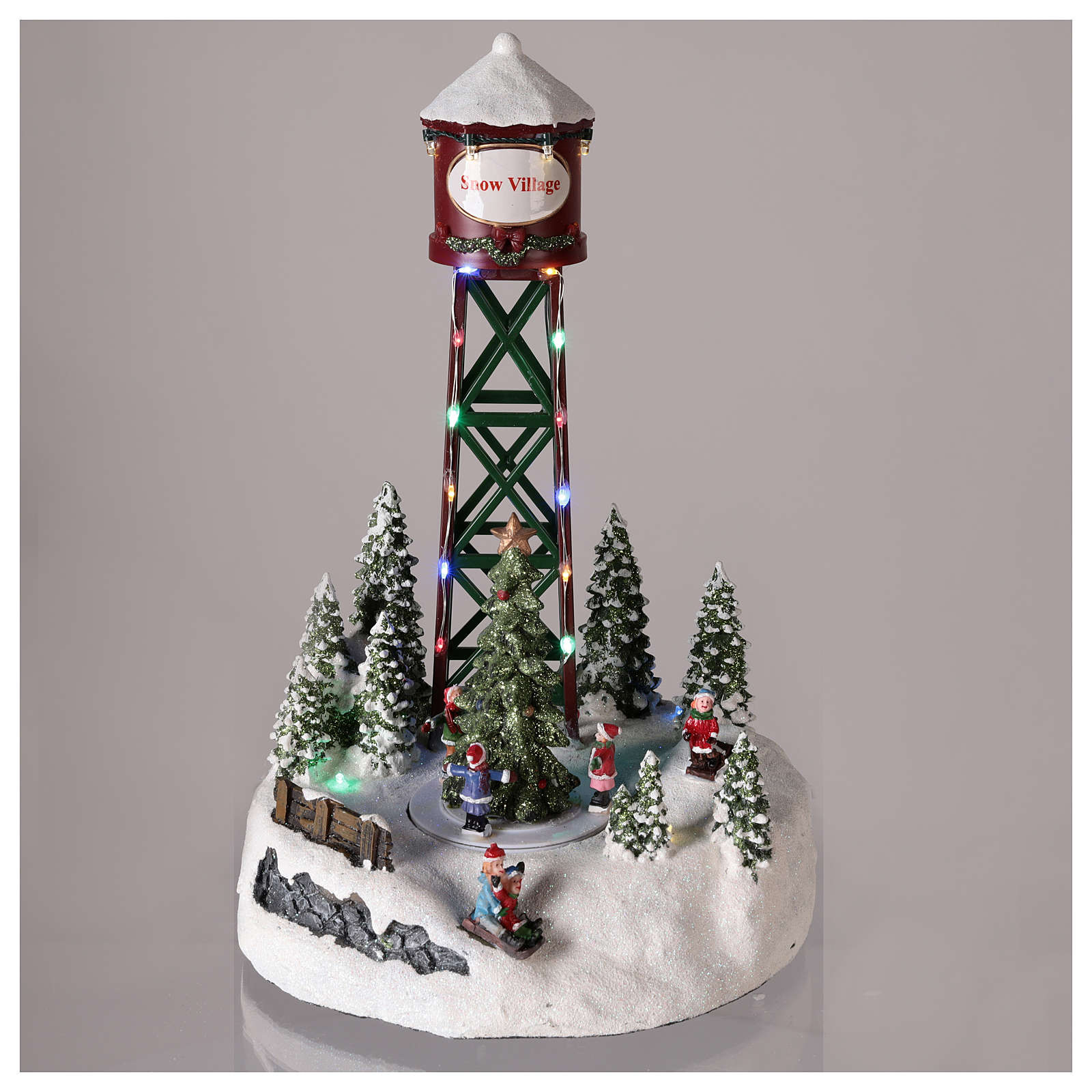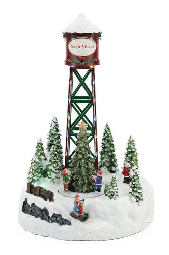 Christmas village water tower with rink and Christmas tree 35x20 cm.