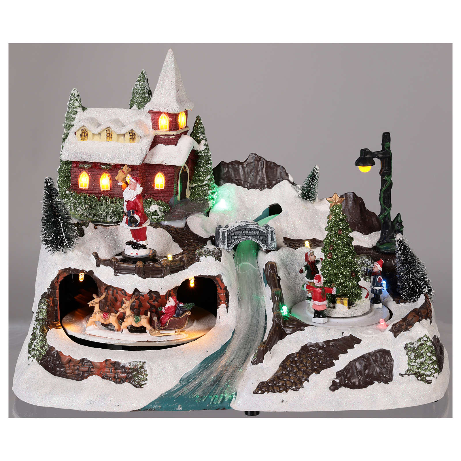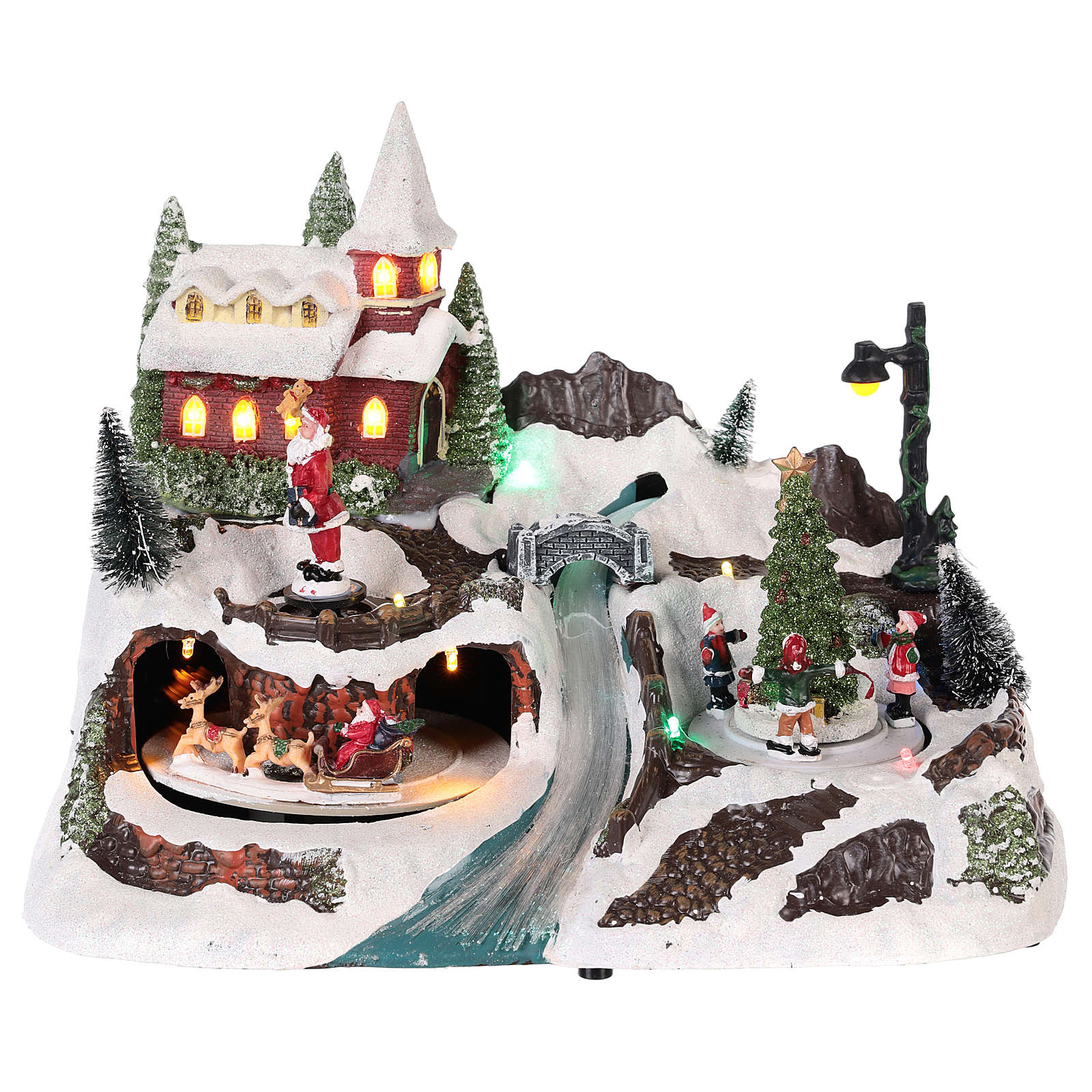 Christmas village with Santa Claus and kids in motion 20x30x20 cm.