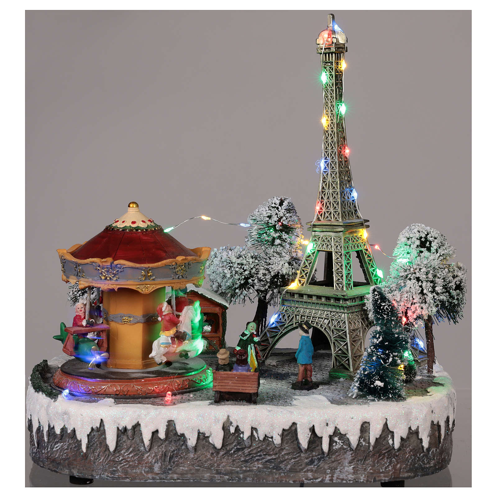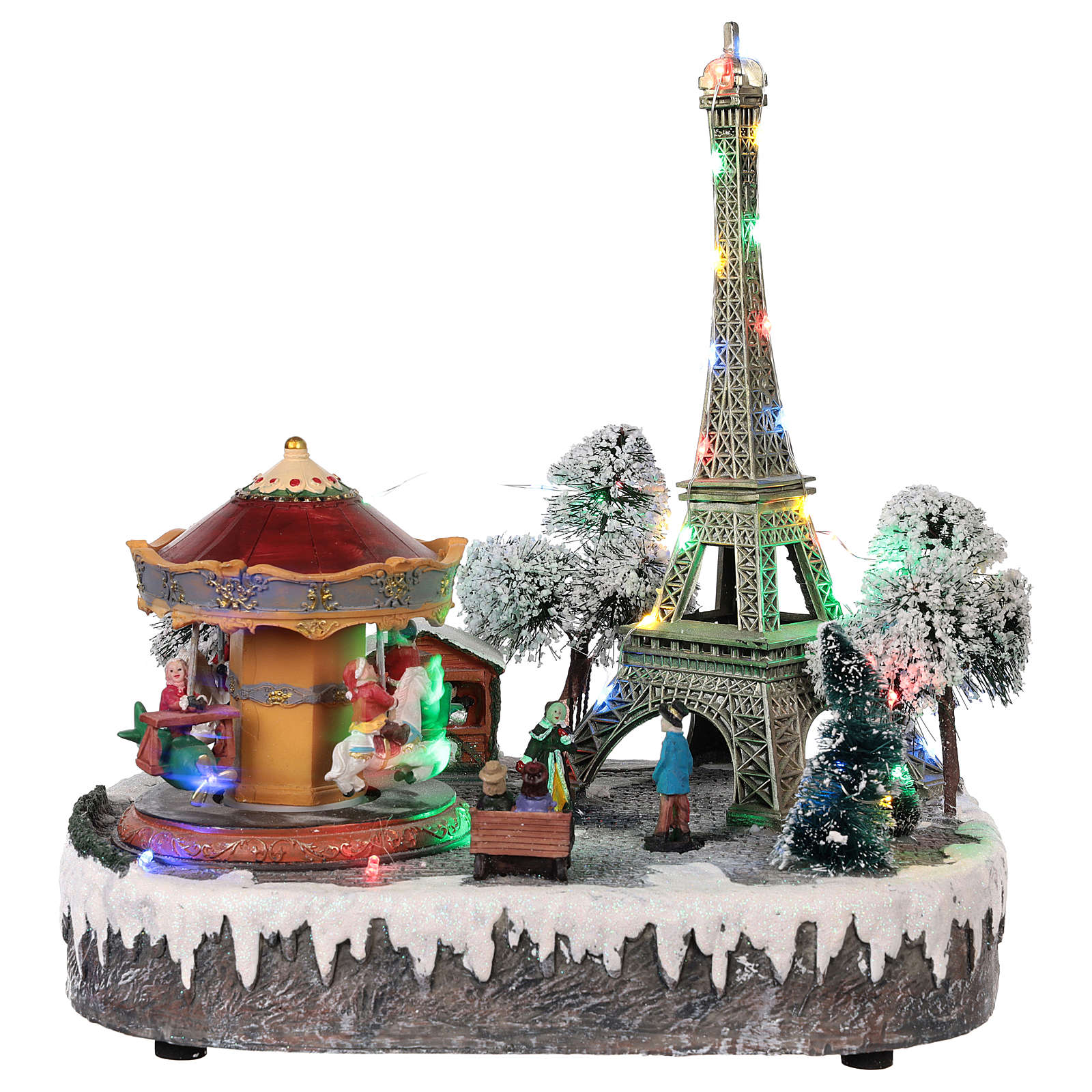 Christmas village in Paris movement lights music 30x30x25 cm.