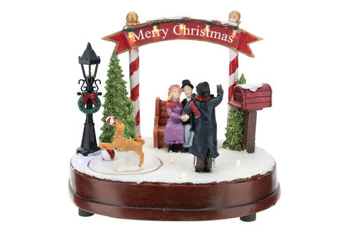 The illuminated and snowy landscape depicts a village where everyone is involved in various Christmas activities. The winter village is perfectly suited to any environment and is compatible with all villages and accessories of the same style (such as MyVillage products and Lemax villages). The movements, lights and music work with 3 AA batteries, not included.