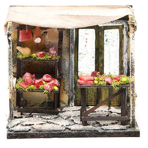 Nativity butcher's stall in wax, 18x20x14cm