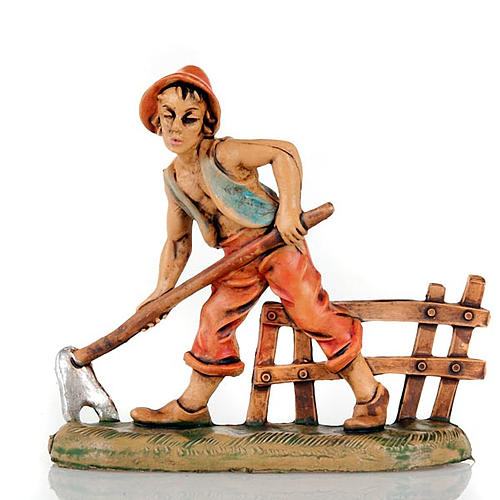 Nativity set accessories: resin figurine of a farmer at work with his hoe. The figurine is 8cm tall.