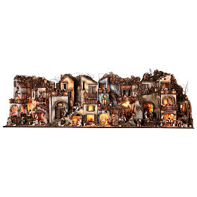 Nativity village Neapolitan style with stable, lights and fire