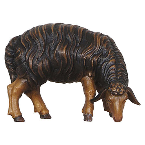 Black sheep eating head right Heimatland nativity scene 9.5 cm painted wood Val Gardena