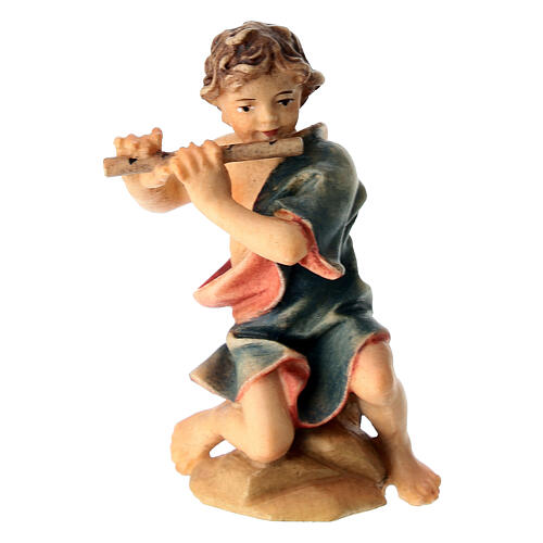 - Child Kneeling with Flute, 10 cm Original Nativity model, in painted Valgardena wood