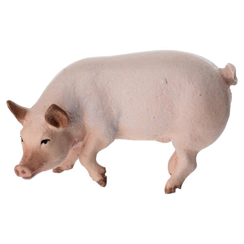Kostner Nativity Scene 9.5 cm, pig, in painted wood. This pig figurine is 100% made in Italy. The wooden pig is painted and carved by hand by artisans from Valgardena.