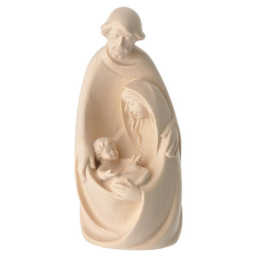 Gorgeous nativity scene made from a single piece of wood that has been finely carved. The statue reproduces the Holy Family: Mary holds the Baby in her arms and Saitn Joseph, standing, tenderly hugs his family. The natural wood used for this statue creates a warm atmosphere, the traits of Mary are sweet and serene. A refined, precious gift for Christmas. This statue is available in three sizes: 25cm; 16cm; 12cm. Choose the desired size.