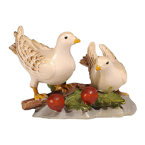 - Pair of doves figure 12 cm Heimatland nativity scene painted Val Gardena wood