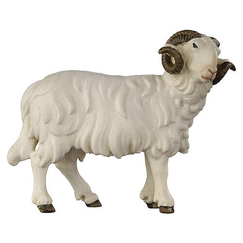 Ram figure head right 9.5 cm Heimatland nativity scene painted wood Val Gardena. Wooden nativity scene animal figurine depicting a ram with its head facing right. 100% made in Italy and suitable for a 9.5 cm nativity scene.