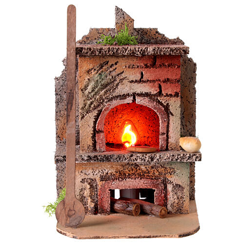 Illuminated wood-fired oven 10x9x15 cm for Neapolitan Nativity Scene. Handcrafted in Naples following local artisanal traditions. Designed for scenes with 8-10 cm figures. The oven figurine features a flickering light bulb inside, mimicking a lit fire effect. Simply plug the 220-240V power cord to activate. This accessory adds warmth and realism, evoking the typical domestic ambiance of a Neapolitan nativity scene. Each piece is meticulously finished by hand, ensuring unique and authentic creations.