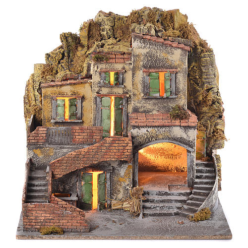Neapolitan Nativity 60x55x45cm Village and fountain for 10cm