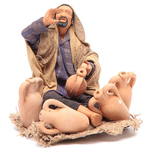 Neapolitan Nativity figurine Merchant sitting with amphorae 14cm