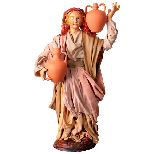 Neapolitan nativity figurine of a woman carrying a jug and a pot, suitable for a 30cm (11,81in) nativity scene.