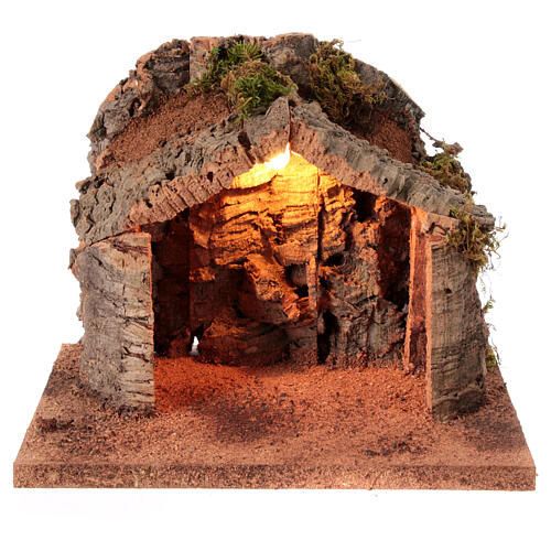 Neapolitan nativity scene cork stable 12-14 cm illuminated 25x35x25 cm