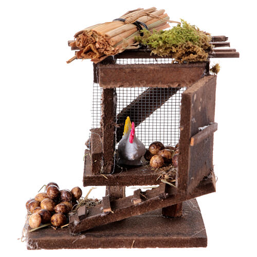 - Wooden Henhouse with Hens and Eggs for 12 cm Naples Nativity Scene, 10x10x10 cm