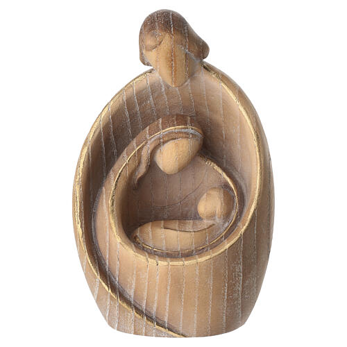 Modern style Holy Family in dark ash wood with golden edge, Val Gardena.