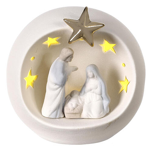 - Nativity Holy Family sphere white star lights porcelain 12 cm