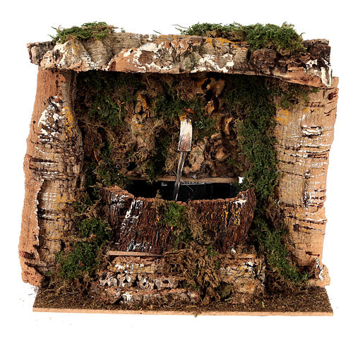 Working fountain for nativity scene of 12 cm.Fountain mainly made of cork and wood decorated with moss. It has a functioning pump, which allows water to circulate through the tap.To operate the pump and activate the fountain, first fill water into the basin, then connect the pump through the Italian plug. Do not use the pump without first adding water, to avoid breaking it.The working fountain accessory is made with great care and attention to detail by nativity masters in Italy.TECHNICAL FEATUR...