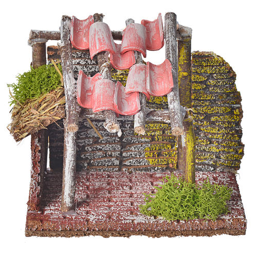 Nativity setting, wooden animal stable measuring 14x14x9cm.