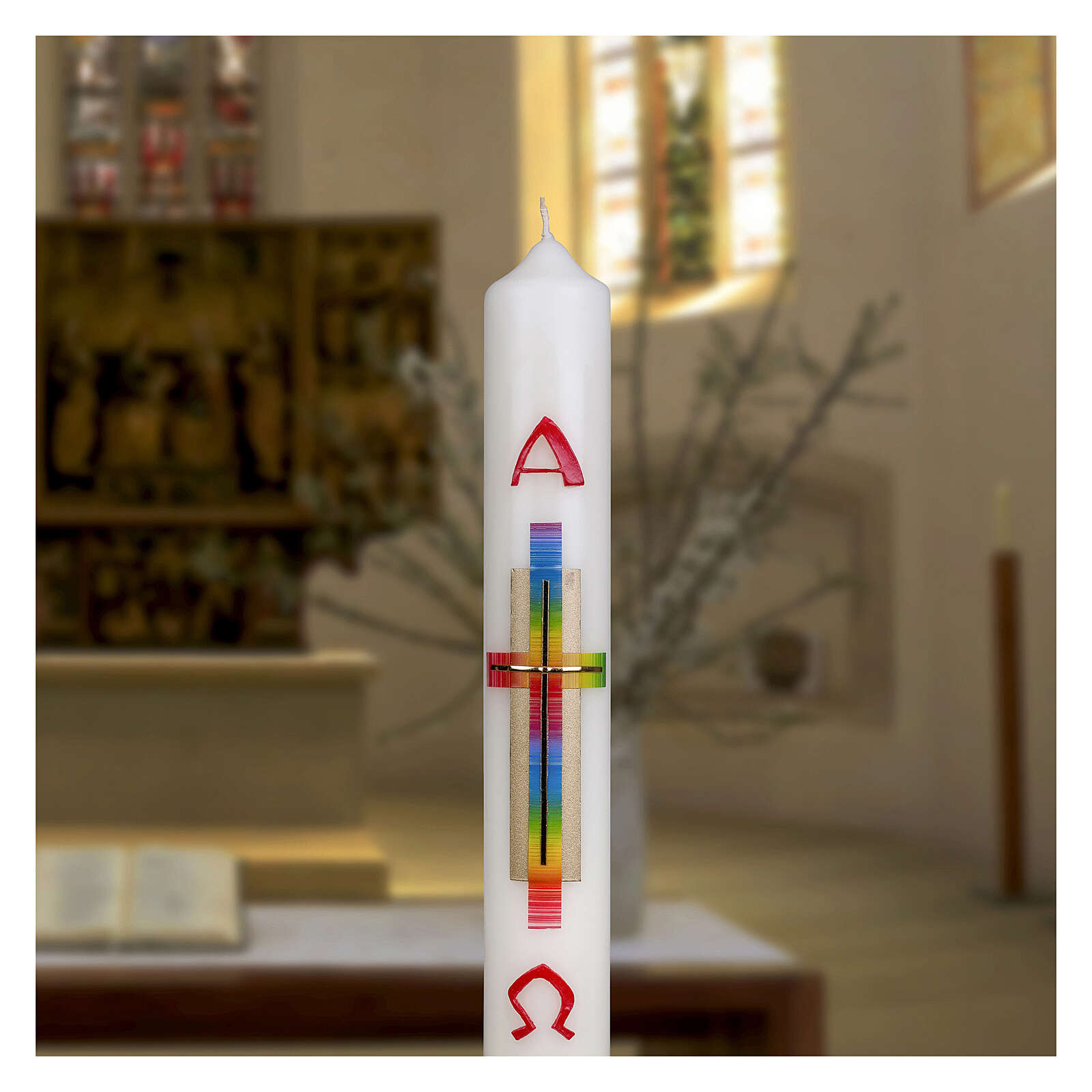 Easter candle gold rainbow cross 400x60 mm beeswax
