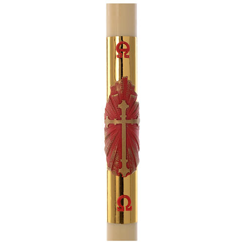 Easter candle with support in beeswax with red and gold cross 8x120cm
