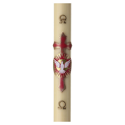 Paschal Candle 120x8 cm beeswax with Dove on embossed red cross