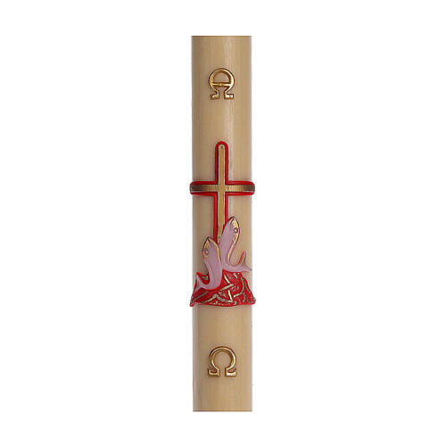 Paschal candle in beeswax with support and red cross and fish 8x120cm