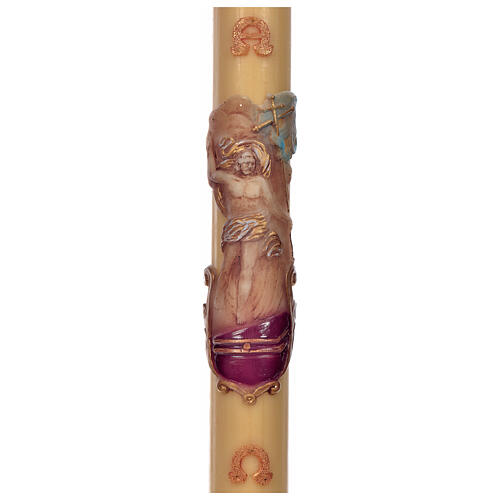 Paschal candle in beeswax with support and Resurrected Christ 8x120cm.