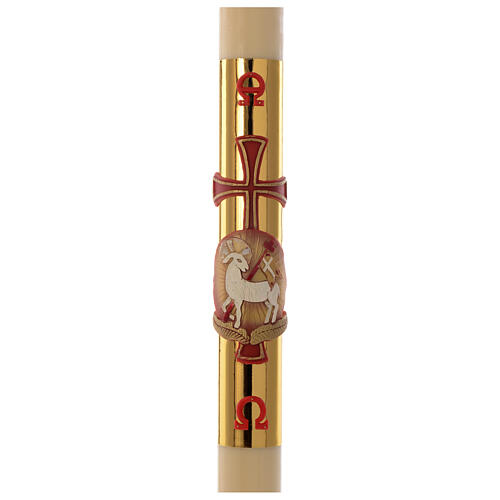 Paschal candle in wax with lamb and golden cross 8x120cm.