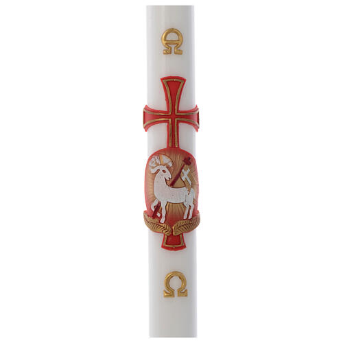Paschal candle in white wax with lamb and cross 8x120cm.