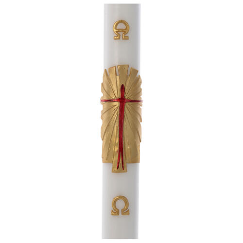 Paschal candle in white wax with metal support and golden Resurrected Christ 8x120cm