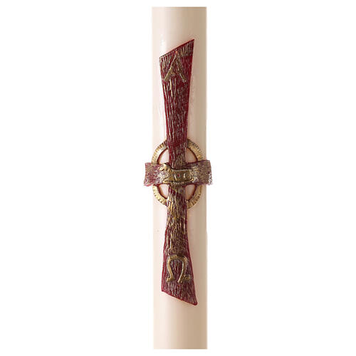 Paschal candle ivory red cross with lamb Alpha Omega cross 120x8 cm