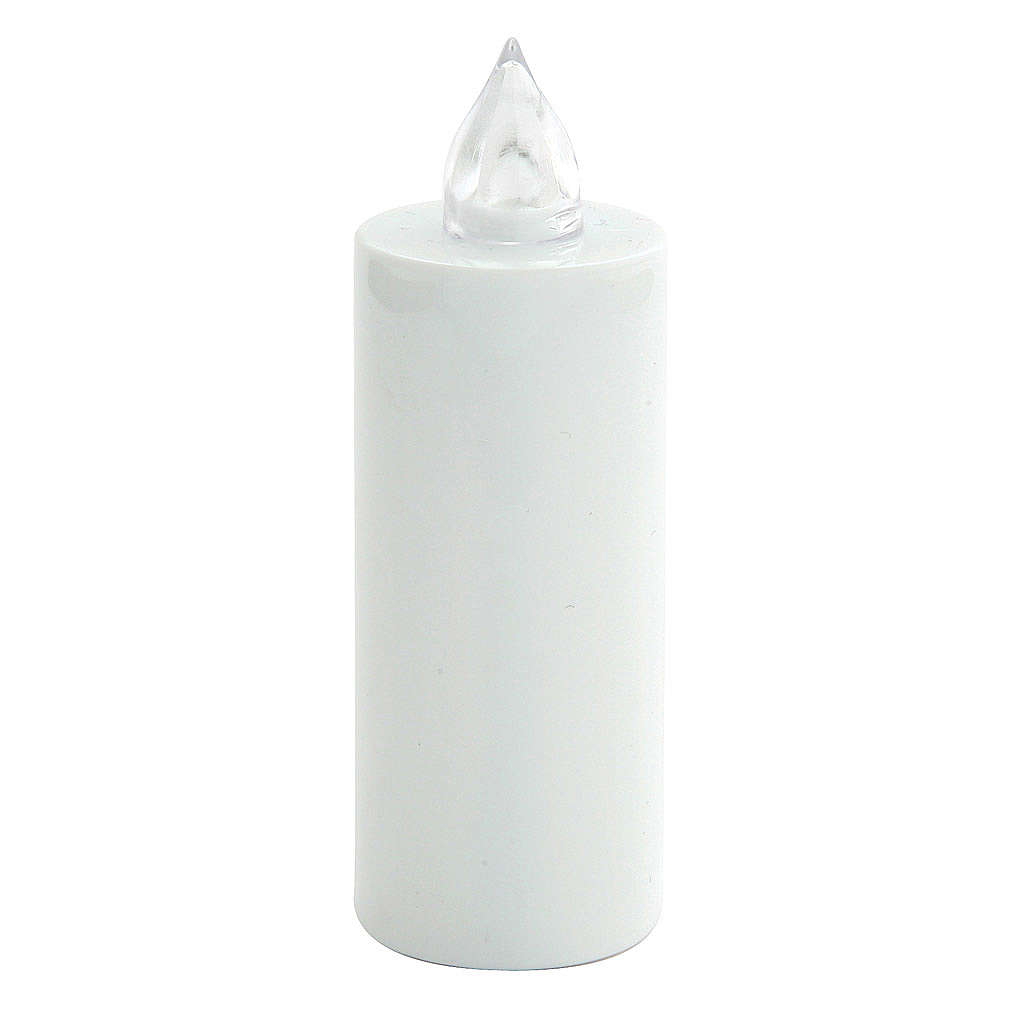 Battery powered votive candle Lumada, white and disposable with support. It has a flickering red light.