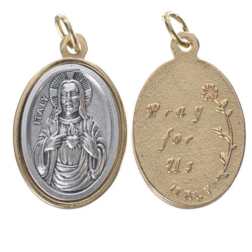 Sacred Heart of Jesus oval medal made of silver and golden metal, measuring 2.5cm.