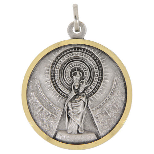 Two-tone medal Our Lady of the Pillar 32 mm silver-plated brass